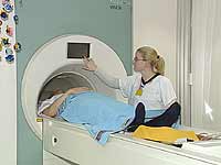 Beim MRI, auch Kernspintomographie genannt, werden im Gegensatz zur Computertomographie keine Röntgenstrahlen verwendet. Es kann die Wirbelsäule im Querschnitt und zusätzlich auch im Längsschnitt darstellen.