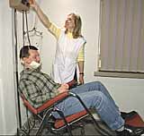 Hier das schonende Öffnen des Bandscheibenraumes durch Extension auf einem speziellen, in alle Richtungen schwenkbaren Behandlungstisch.