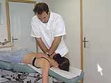 Die Manipulation erfolgt beim Ausatmen, da die Patientin in diesem Moment keinen Widerstand leistet.